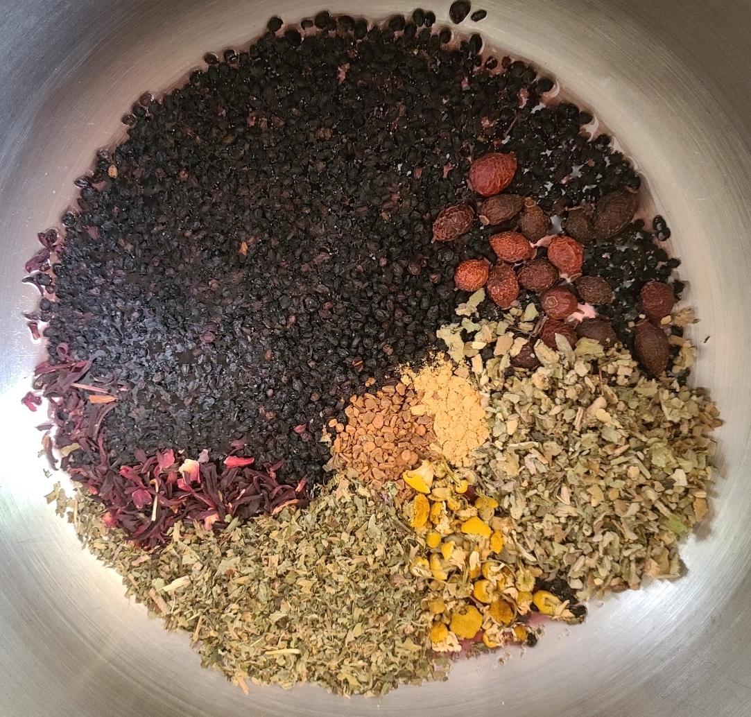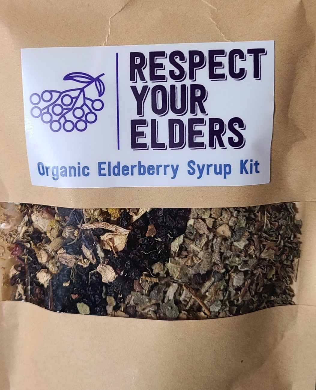 Respect Your Elders Organic Elderberry Syrup Kits are easy to prepare at home. Each kit comes with pre-measured ingredients, a cheesecloth to boil the herbs in as well as easy to follow, step by step directions! Each kit makes approximately 64 ounces of syrup.